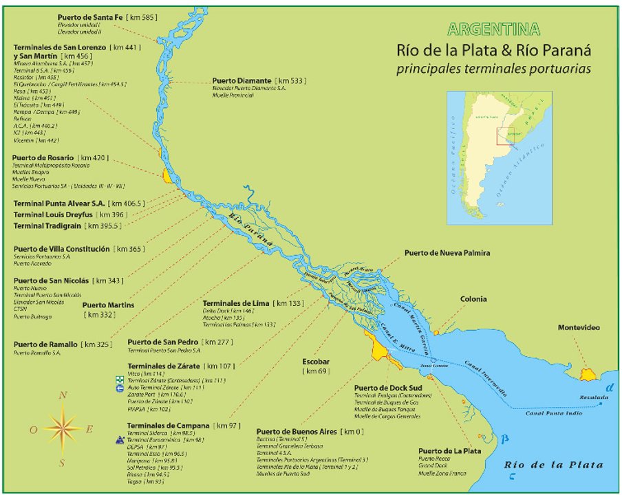 Las transnacionales ligadas a los agronegocios anunciaron y efectuaron inversiones fenomenales en la zona del Gran Rosario para aumentar sus capacidades de almacenamiento, transporte y trituración del poroto de soja. «La inversión fundamentalmente es de grandes empresas internacionales que están establecidas en Argentina, en Brasil, en Europa y también, por supuesto, en Estados Unidos; pero han visto aquí, en Argentina, las mayores posibilidades». Así comenzaba, un directivo de la Bolsa de Comercio de Rosario, su explicación sobre la rápida necesidad de las obras en la Hidrovía: según las estimaciones bursátiles, la producción argentina de granos —una de las más importantes del mundo— no bastará para alimentar la capacidad de producción instalada por los inversores, que necesitarán «bajar» soja desde Paraguay, Bolivia y el sur de Brasil, usando mayores embarcaciones para abaratar los costos de transporte, con el fin de utilizar al máximo su futuro potencial para procesar y comercializar la soja y sus derivados. Los más preocupados por la Hidrovía eran los productores de Estados Unidos: sus organizaciones visitan anualmente el país y usan este ejemplo para presionar a su gobierno a que haga obras similares en el Misisipi.