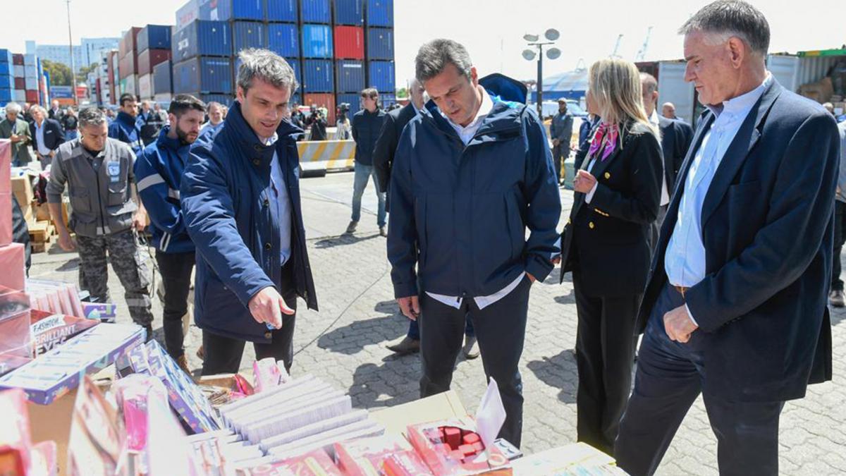 “Necesitamos cuidar los dólares de los argentinos, proteger las reservas; darle confianza, fortaleza y credibilidad a nuestra moneda y que nuestra industria no tenga que competir con mercadería importada de manera desleal, con contrabando”, argumentó Sergio Massa, quien participó del operativo.