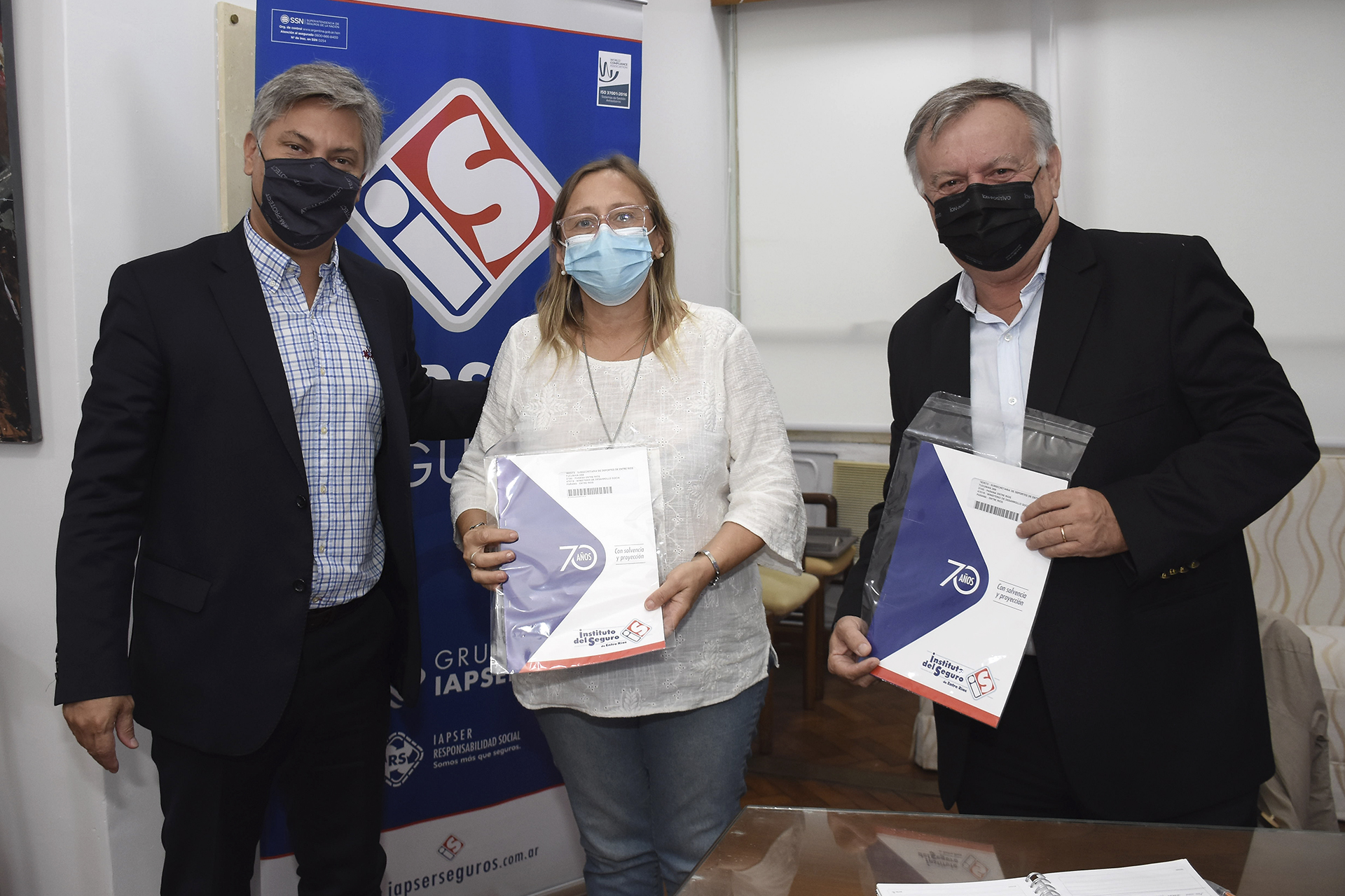 En un encuentro celebrado en la sede del Instituto Autárquico Provincial del Seguro (Iapser), la ministra de Desarrollo Social, Marisa Paira, y el secretario de Deportes, José Gómez, firmaron una ampliación de convenio de pólizas a deportistas con el presidente de la empresa, Tomás Proske, junto al gerente general, Luciano Rey.