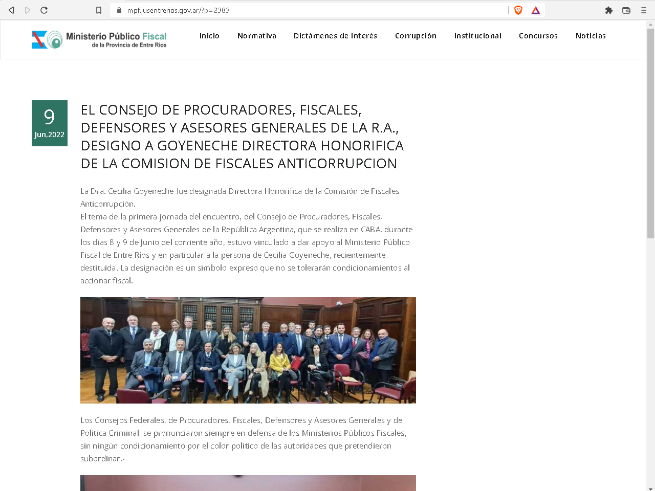La página web oficial del Ministerio Público Fiscal (MPF) fue utilizado para divulgar una actividad particular de Cecilia Goyeneche, quien fue destituida del cargo que detentaba hace unas semanas por mal desempeño de sus funciones, según pudo constatar APFDigital