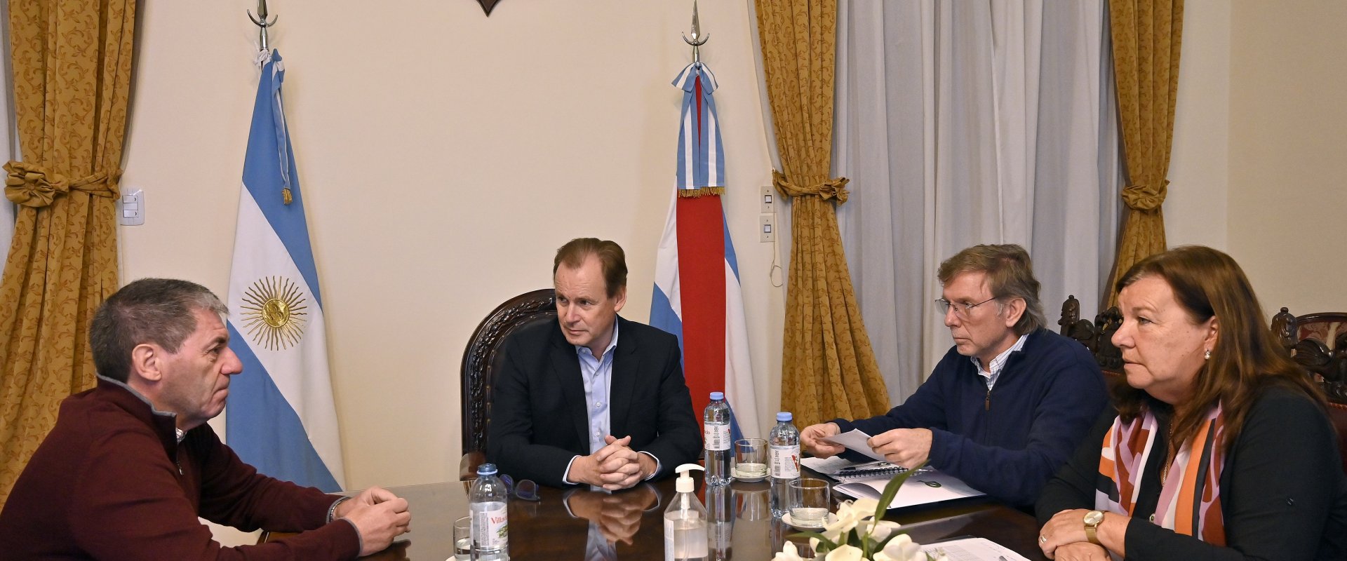 El gobernador encabezó este lunes un encuentro en el Salón de Acuerdos de la Casa de Gobierno con los ministros de Producción, Juan José Bahillo; y de Economía, Hugo Ballay; y con la directora de Vialidad provincial, Alicia Feltes, donde se trabajó sobre diseños para lograr financiamiento crediticio o disponer fondos de la provincia para encarar un nuevo programa de obras viales, fundamentalmente en los caminos rurales.