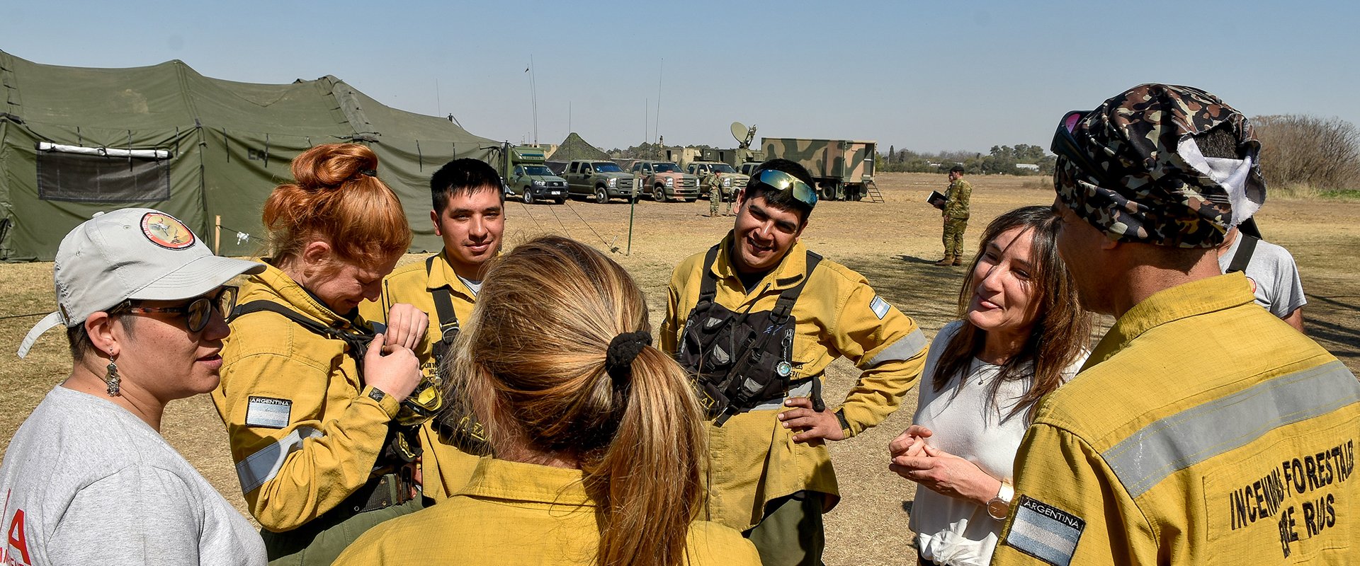 El gobernador de Santa Fe, Omar Perotti; la ministra de Ambiente de Santa Fe, Erika Gonnet, y la secretaria de Ambiente de Entre Ríos, Daniela García, recorrieron el comando de Alvear, frente a Rosario, donde se trabaja de forma articulada con 74 brigadistas de Entre Ríos, Santa Fe, Córdoba y Fuerzas Armadas, Gendarmería y Prefectura, con medios aéreos de ambas provincias y del gobierno nacional, para combatir los incendios registrados en islas entrerrianas.