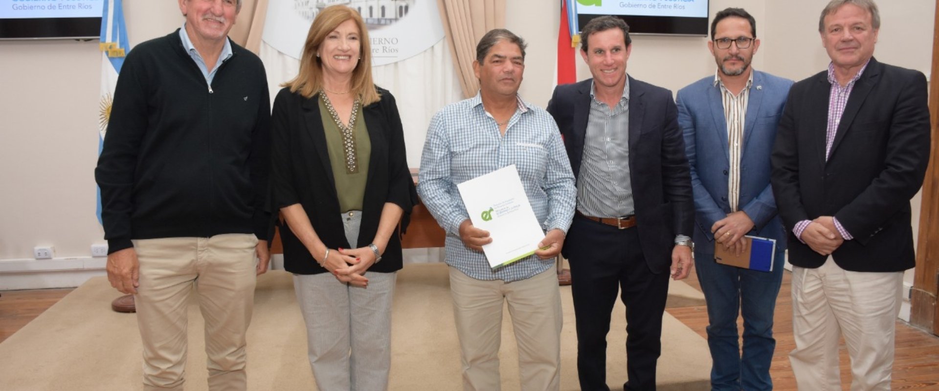 En la Sala de Periodistas de Casa de Gobierno se llevó adelante este lunes la entrega de personería jurídica a la Asociación Civil Pescadores Unidos del Paraná, que fue recibida por su presidente, Flavio Daniel Enriquez. La ministra de Gobierno y Justicia, Rosario Romero, presidió la entrega junto al senador Juan Carlos Kloss, el secretario de Agricultura y Ganadería, Lucio Amavet; el secretario de Hacienda, Inversion, Empleo, Ciencia y Tecnología, de la municipalidad de Paraná, Eduardo Macri, y el director de Personería Jurídica de la provincia, Lisandro Amavet.