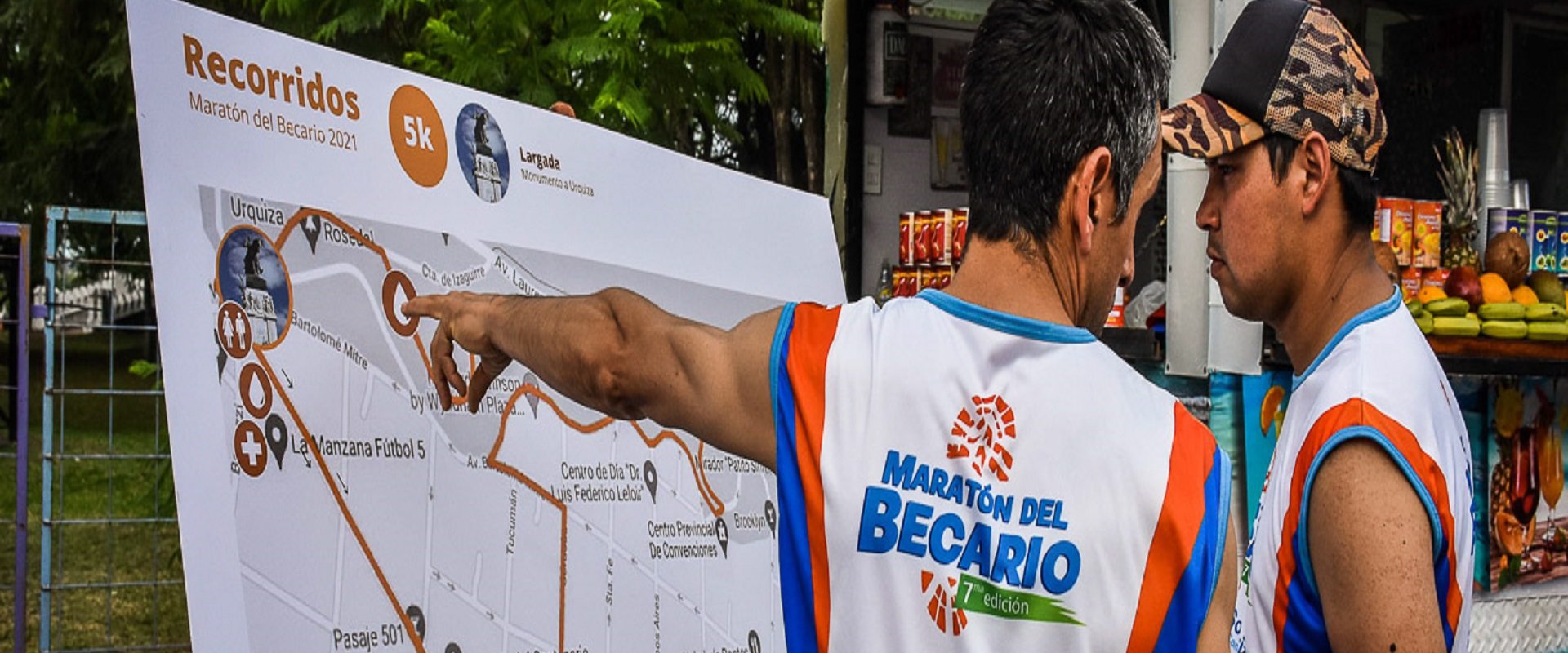 La Maratón del Becario es un evento deportivo y social cuyo fin es promover la actividad física y la solidaridad, ya que la inscripción consta de la donación de útiles escolares que se puede adquirir al retirar el kit de la carrera. Estos elementos son destinados a los niños y niñas que asisten a los diferentes centros de apoyo escolar de la provincia que brinda el Becario a través de su programa Educando en Movimiento.