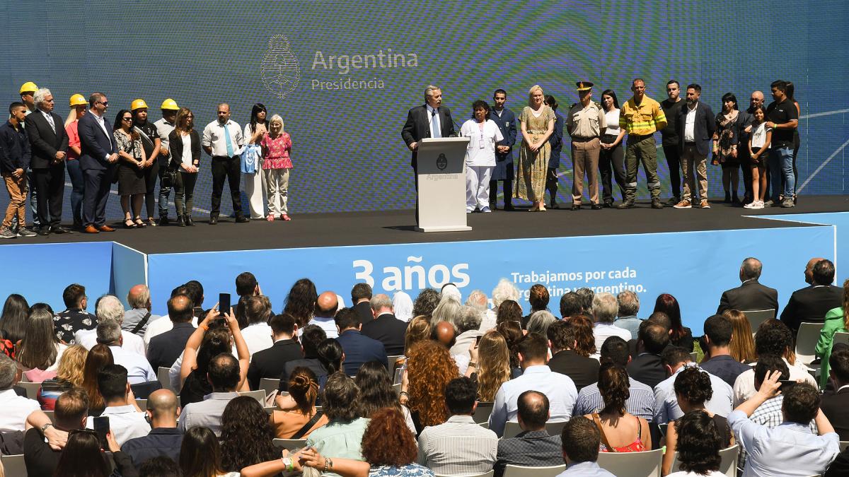 En el acto, el mandatario estuvo acompañado por ciudadanos y ciudadanas alcanzados por diferentes políticas públicas implementadas por la administración nacional, como una enfermera, militares que reportan en la Antártida y en el sistema de manejo del fuego, un guardaparque, una afiliada al PAMI, un guarda tren, investigadoras del Conicet, un fabricante de motos y autos, un representante de laboratorio, una docente de escuela técnica, becarios de distintos programas de Educación y una empresaria turística beneficiada por el Previaje, entre otros.