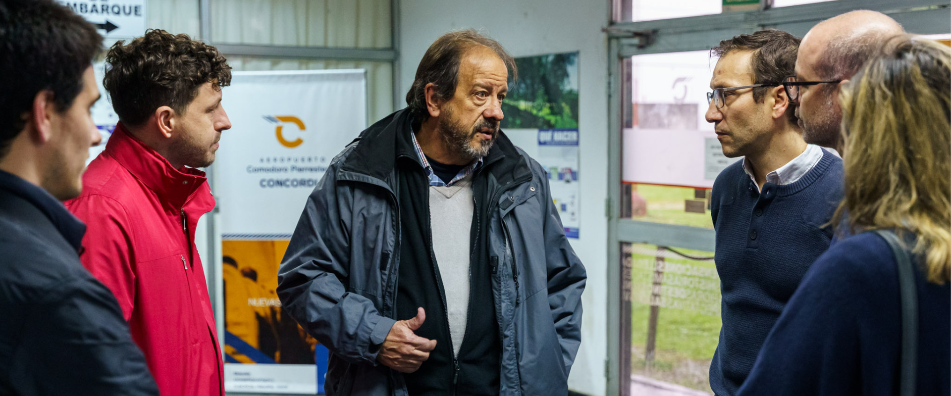 La jornada del miércoles comenzó en el Aeródromo de Concordia, Comodoro J. J. Pierrestegui, junto con su director Gabriel Di Lauro. Y a pesar de las condiciones climáticas adversas, el equipo avanzó con las conversaciones y recorridas por el Centro de Frontera, y finalmente el Puente carretero y ferrovial de la Represa Hidroeléctrica Salto Grande.